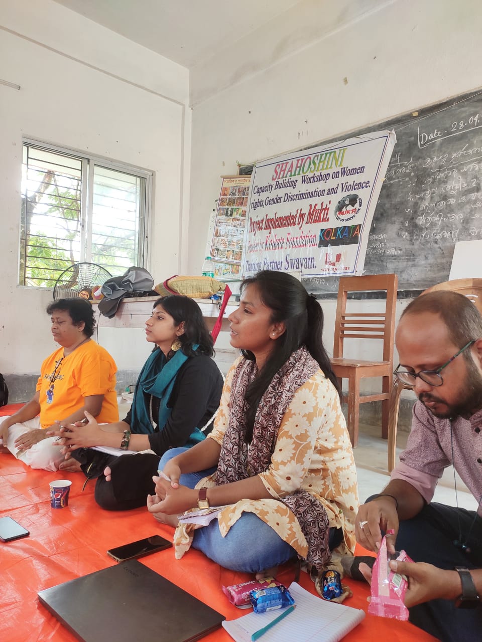 Mukti organized a training session at Raidighi for 29 women involved in the Sahosini Project, on May 11th and 12th. The project “Sahosini” is a Kolkata Foundation initiative, developed in collaboration with Mukti and being implemented under the joint guidance of both organizations. The training was facilitated by two trainers from Swayam, the training partner for the Project. Ms. Nandita Jayraman, the Project Manager of Rights and Special Needs at Mukti, along with two Sahosini project field coordinators, Ms. Shiva Mandal and Ms. Devjani, represented Mukti during the training.