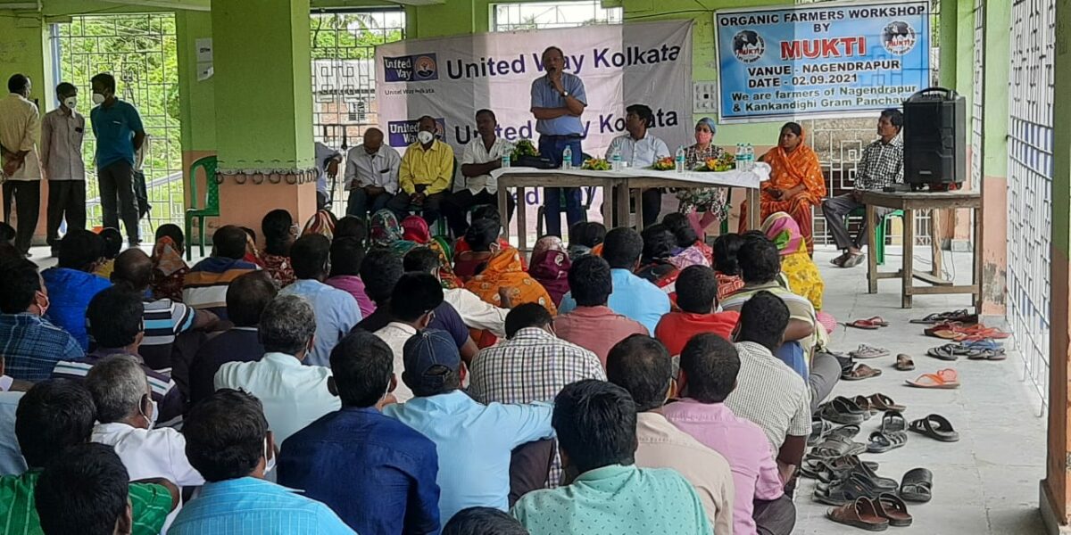 Mukti organised the workshop at Nagendrapur Cyclone Center under Mathurapur II block. The workshop started at 11:30 am and continued till 2:00 pm. Mukti honored her with a bouquet. Mr. Debabrata Halder, the CEO of Mukti and project coordinator of Mukti Fresh, Mr. Iswar Majumder, the advisor of SAM (Sustainable Agricultural Movement) project, Mr. Sourav Kayal, project coordinator of SAM, other Mukti volunteers along with 280 Mukti organic farmers from Nagendrapur and Kankandighi GP attended the workshop.