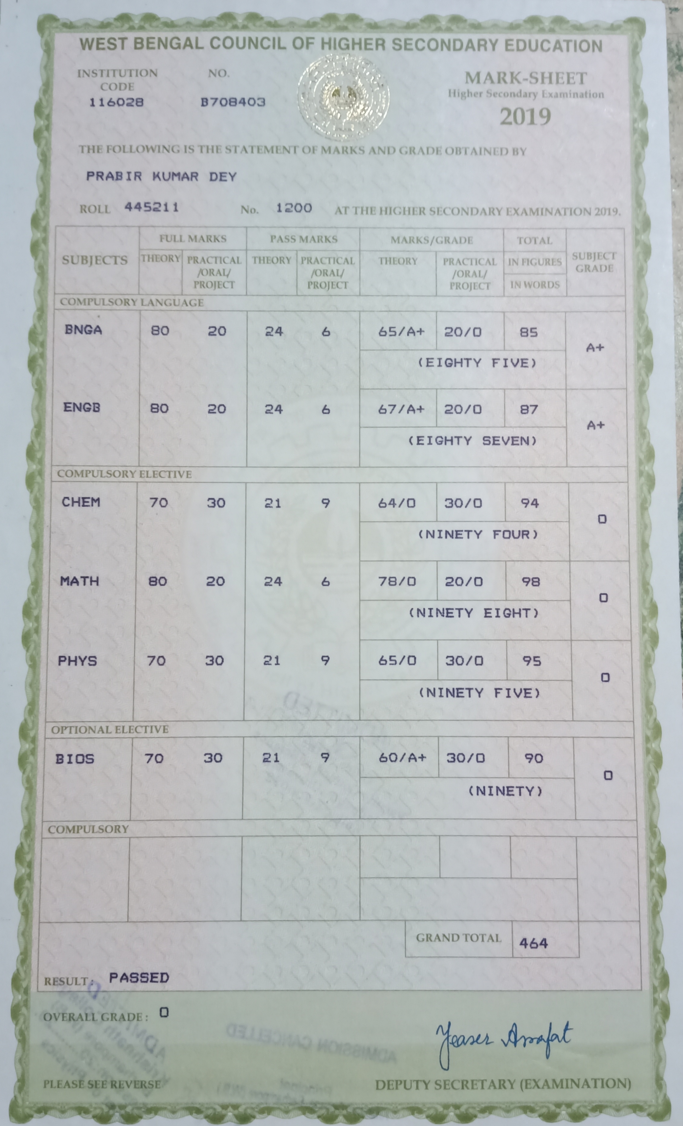 B.Sc. 2nd year 2nd semester Mark Sheet